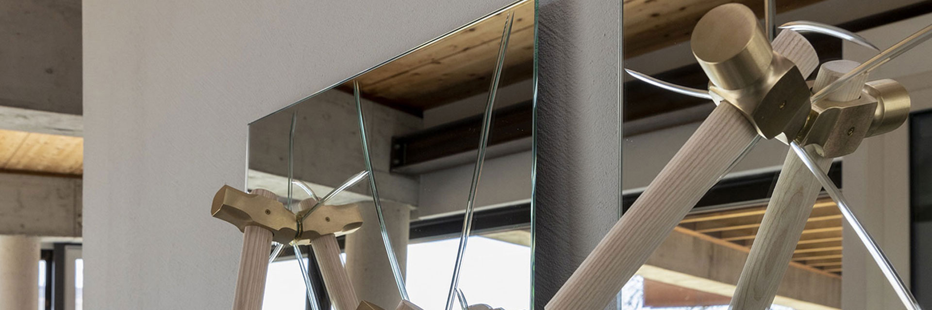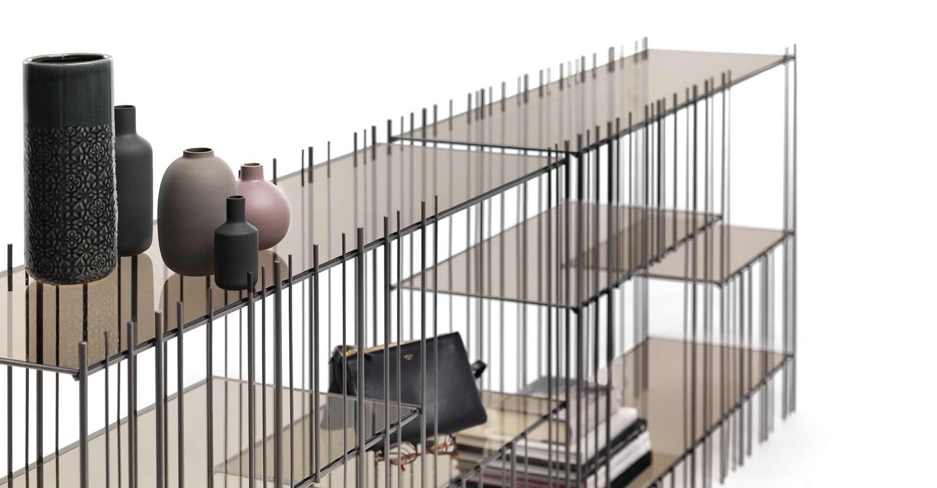Grafische Schnitte im Gegensatz zu geschwungenen Linien, warme und kalte Materialien, Dynamik und Vielseitigkeit kennzeichnen die Produkte.