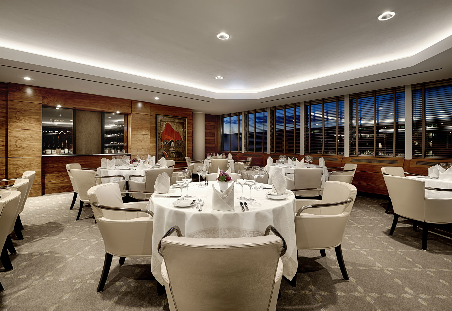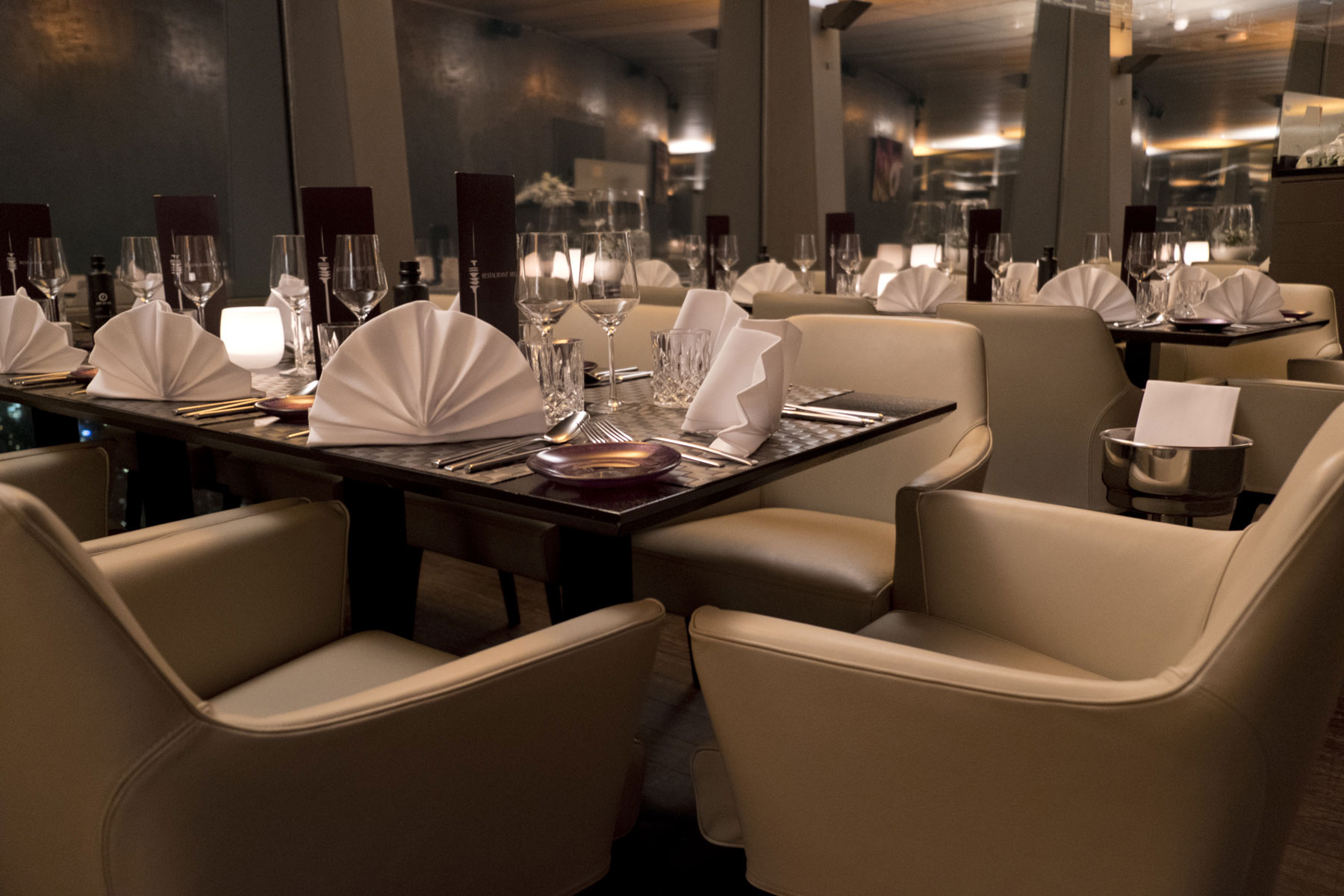 Die offenen Schauküchen kennen keine Geheimnisse und verlocken mit den besten Geschmäckern aus aller Welt. Asiens unbeschreibliche Gewürzvielfalt, das Feinste von Sushi und Sashimi, fangfrischer Fisch aus allen Meeren und natürlich die Klassiker der Wiener Küche lassen keinen Wunsch offen. Für die komfortable Bestuhlung wurden die klassischen Giorgina Esszimmerstühle von Giorgetti ausgewählt.