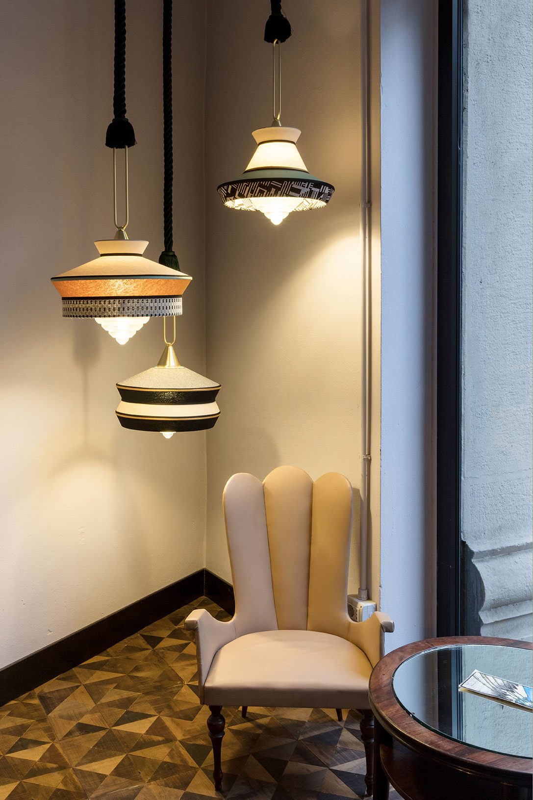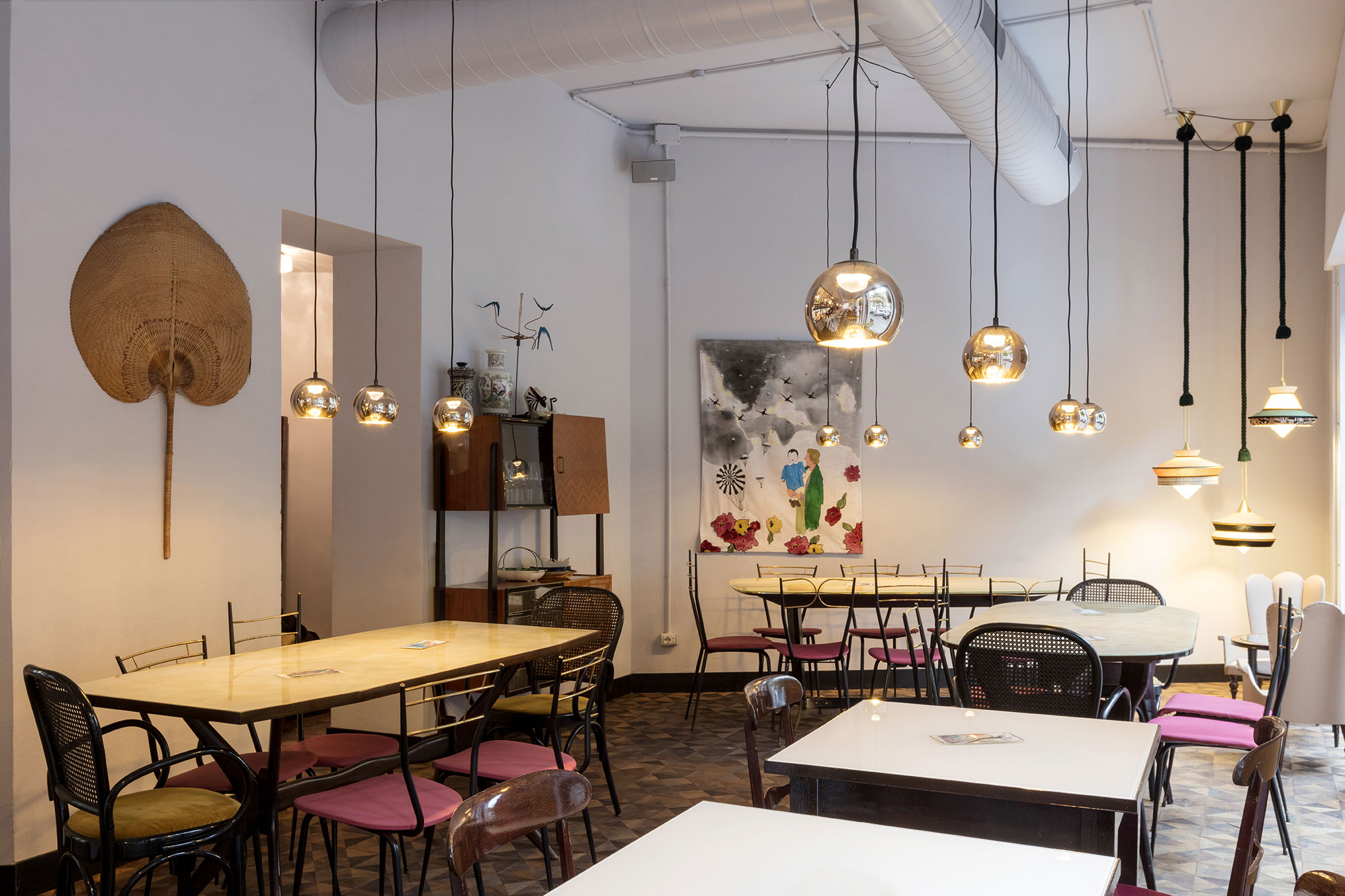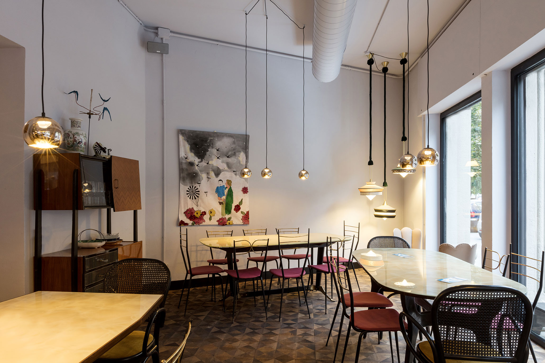 Der Ort im Retro-Stil verzaubert dank mehrerer Kultstücke der Contardi-Kollektion: Calypso SO und Kubric SO beleuchten die Esstische, während Treasure SO Deluxe-Lampen die Theke bereichern.