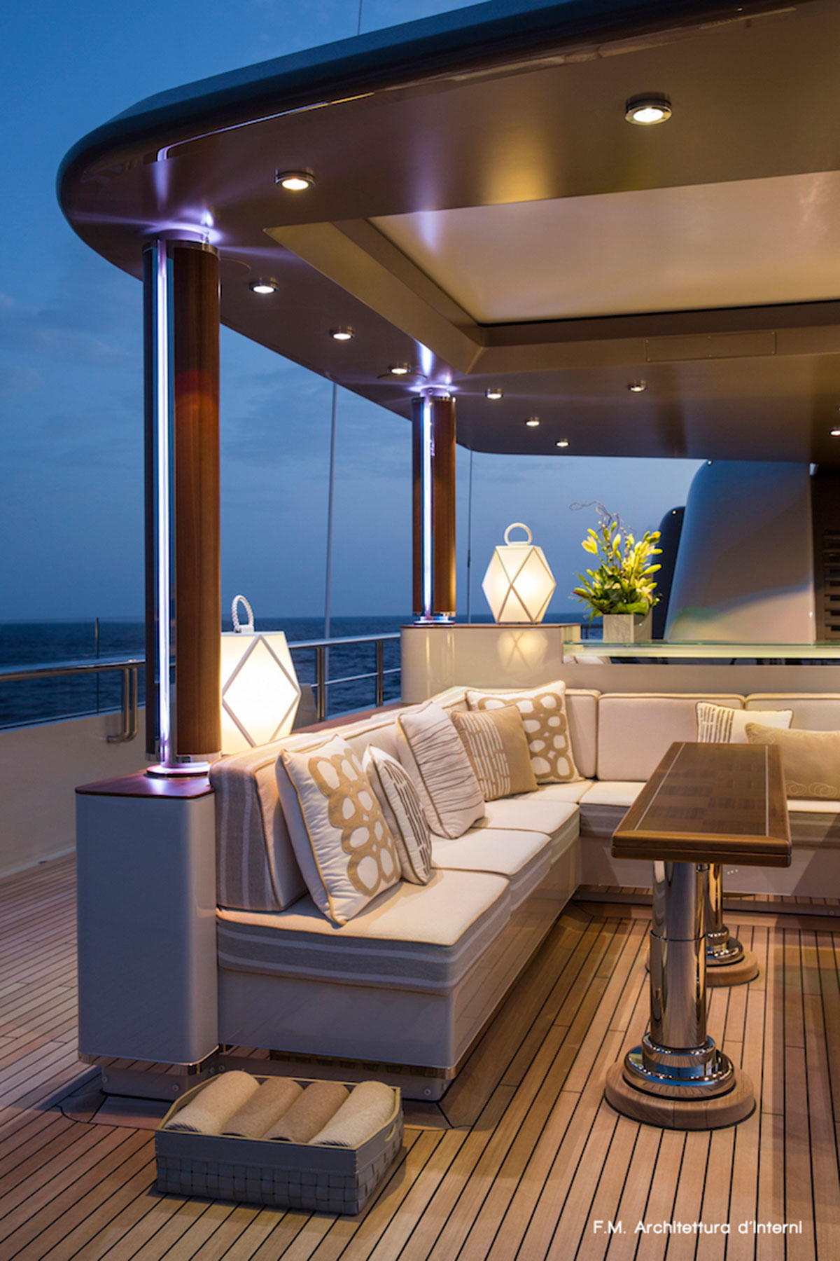 Contardi wurde ausgewählt, um Teil des Relaunchs dieser großartigen 65-Meter-Luxusyacht mit dem raffinierten Design der Muse Battery im Freien zu sein.
